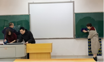 在“一月一课一片一实践”活动环节,全体党员首先观看学习贯彻党的二十届四中全会精神培训课程《“十五五”时期经济社会发展的指导思想、重大原则和根本保证》,深入领会国家发展战略部署,进一步明确教育工作服务国家发展大局的责任使命。随后,大家共同观看电教片《大漠扩绿人》,影片中治沙人扎根荒漠、艰苦奋斗的感人事迹,让党员们深受触动,纷纷表示要以先进典型为榜样,立足本职岗位践行初心使命。恰逢三月学雷锋月,全体党员开展教室清扫实践活动,前往管理楼2楼、3楼教室,认真擦拭黑板、整理讲台物品、清扫教室卫生,以实际行动践行雷锋精神,为师生营造整洁舒适的教学环境。