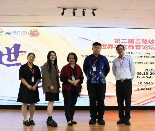 2025年9月19日,第二届“吉隆坡世界华文教育论坛”在马来西亚新纪元大学学院开幕。中国驻马来西亚使馆临时代办郑学方、马来西亚科技与创新部部长郑立慷、新纪元大学学院校长莫顺宗等嘉宾出席并致辞。来自全球的近200位华文教育专家与学者齐聚一堂,共同探讨新时代华文教育的发展挑战与创新方向。我校贾红博士和燕妮老师受邀在会上作专题发言,分享了国际中文教育的“湖南经验”。