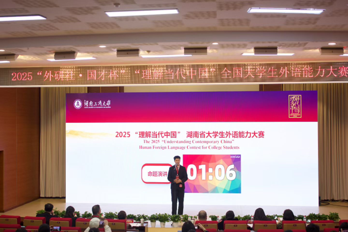 10月26日,2025“外研社・国才杯”“理解当代中国”湖南省大学生外语能力大赛在湖南工商大学圆满落幕。全省42所高校的164名演讲精英同台竞技,我校市政与测绘工程学院蒲嘉乐同学凭借扎实的语言功底与出色的临场表现,勇夺英语演讲赛项金奖,实现我校在该赛项金奖荣誉上的“零的突破”。