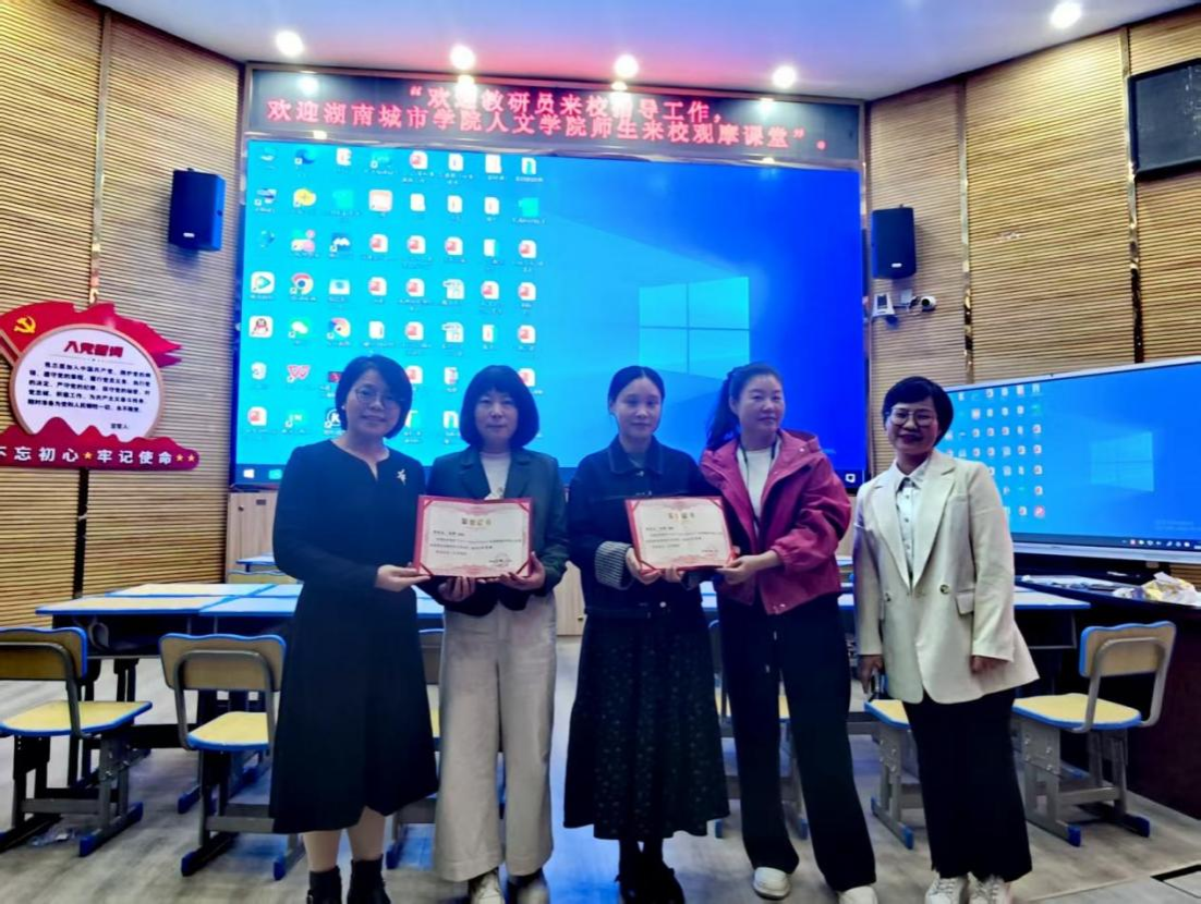 最后人文学院臧永红副院长和英语系伍敬芳主任给梓山湖示范课教学团队颁发证书,同时希望两校及教育行政部门能建立长期交流机制,定期开展教学研讨、实习基地共建,探索U-G-S协同教研新路径,为党为国共育新才。