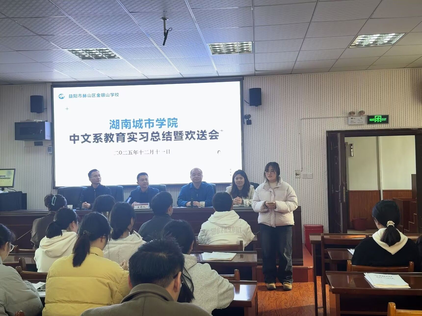 “杲杲冬日光,明暖真可爱。”2025年12月11日上午9时,中文系夏多多、陈思伶、王林飞等教师与汉语言文学专业2205501班17名实习生,齐聚金银山学校,共同参加中文系2026届教育实习总结暨欢送会。本次盛会由金银山学校党委副书记、校长汤胜明主持。