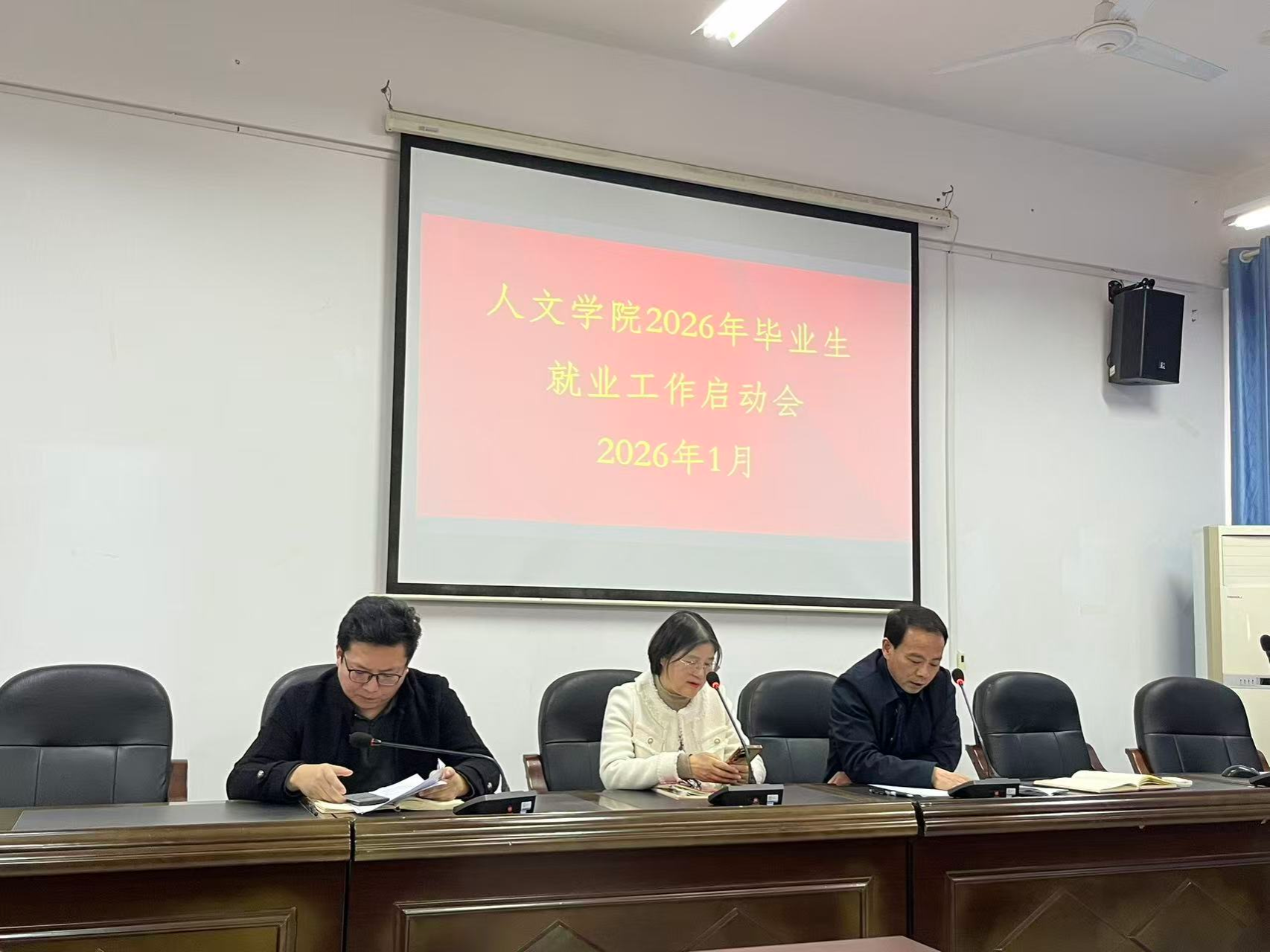 为深入贯彻落实党中央、国务院关于高校毕业生就业工作的决策部署,扎实做好2026届毕业生就业工作,2026年1月,人文学院在管理楼520会议室隆重召开2026年毕业生就业工作启动会。学院党委书记彭海华出席会议并讲话,学院领导班子成员、各系室主任、毕业班辅导员及全体教职工参加会议。